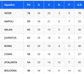 SERIE A - La classifica provvisoria: distanza invariata tra Roma e Atalanta